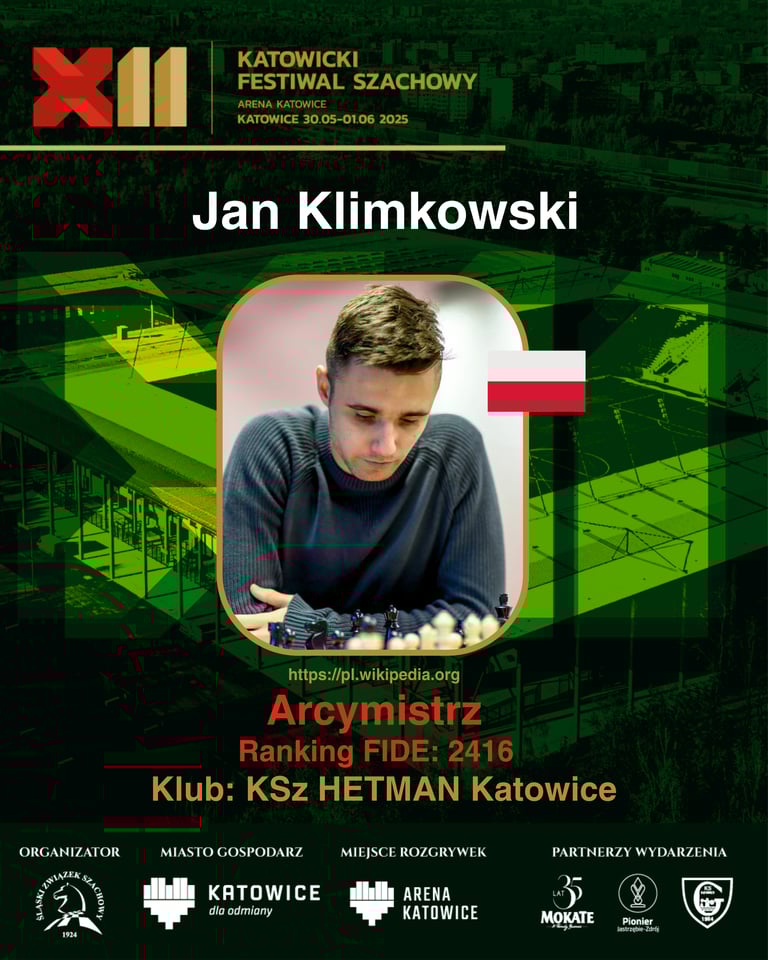 Kończymy naszą serię prezentacji zawodników XII Katowickiego Festiwalu Szachowego! Ostatnim przedstawianym przez nas szachistą jest niezwykle utalentowany GM Jan Klimkowski! Jan to jeden z najmłodszych arcymistrzów w historii Polski, zawodnik Hetmana GKS Katowice, który mimo młodego wieku ma już na koncie mnóstwo sukcesów!