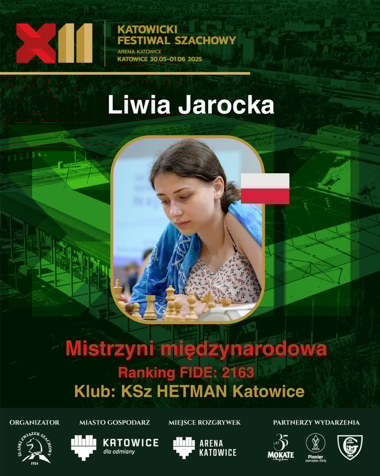 Myśleliście, że to koniec naszej serii prezentacji? Nic z tego! Na liście uczestników XII Katowickiego Festiwalu Szachowego pojawiły się jeszcze nowe, szachowe nazwiska! Z ogromną przyjemnością przedstawiamy WIM Liwię Jarocką – zawodniczkę Hetmana GKS Katowice!