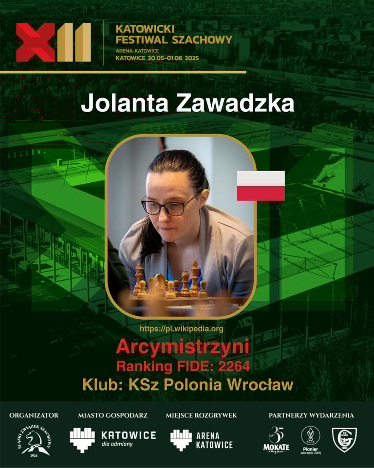Kolejna silna zawodniczka dołącza do składu festiwalu! Z radością przedstawiamy WGM Jolantę Zawadzką – jedną z najbardziej utytułowanych szachistek w Polsce! Jola od lat zachwyca swoją grą i nieustannie udowadnia, że szachownica to jej królestwo!
