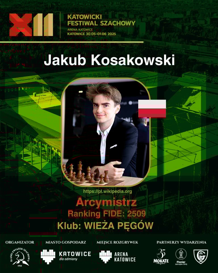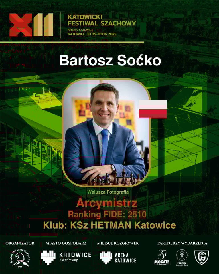 Arcymistrz Bartłomiej Heberla zagra podczas XII Katowickiego Festiwalu Szachowego w Arenie Katowice